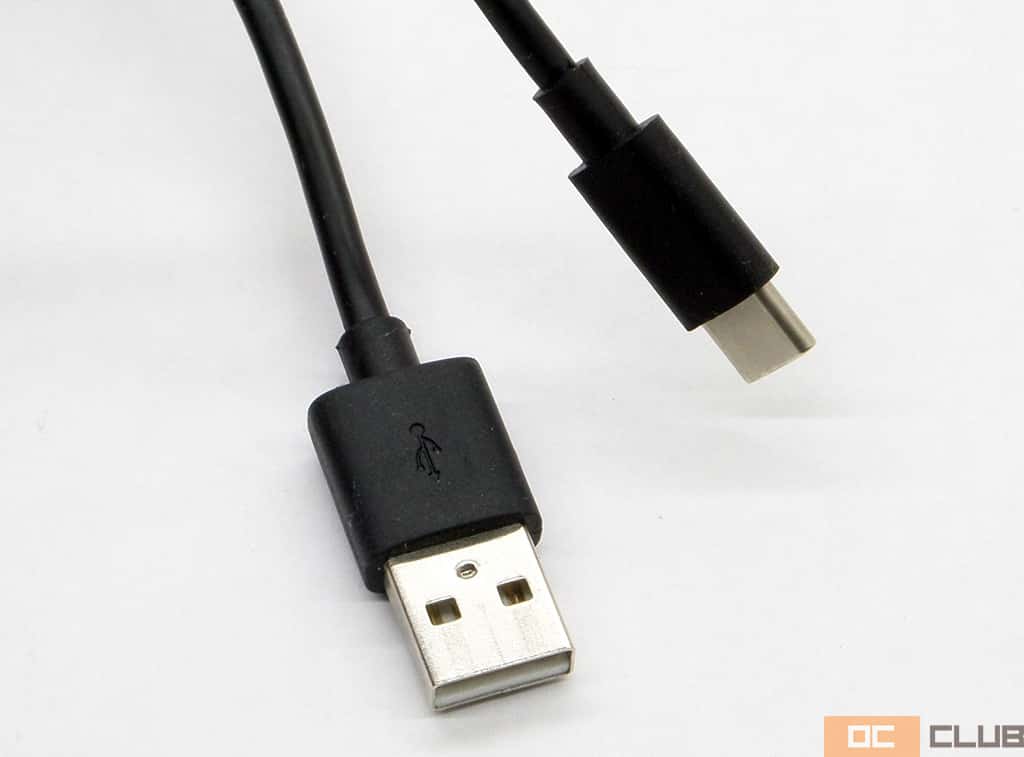 Комплект включает лишь различную «макулатуру» и кабель USB > USB Type-C. Оплётки и позолоты контактов на нём нет.