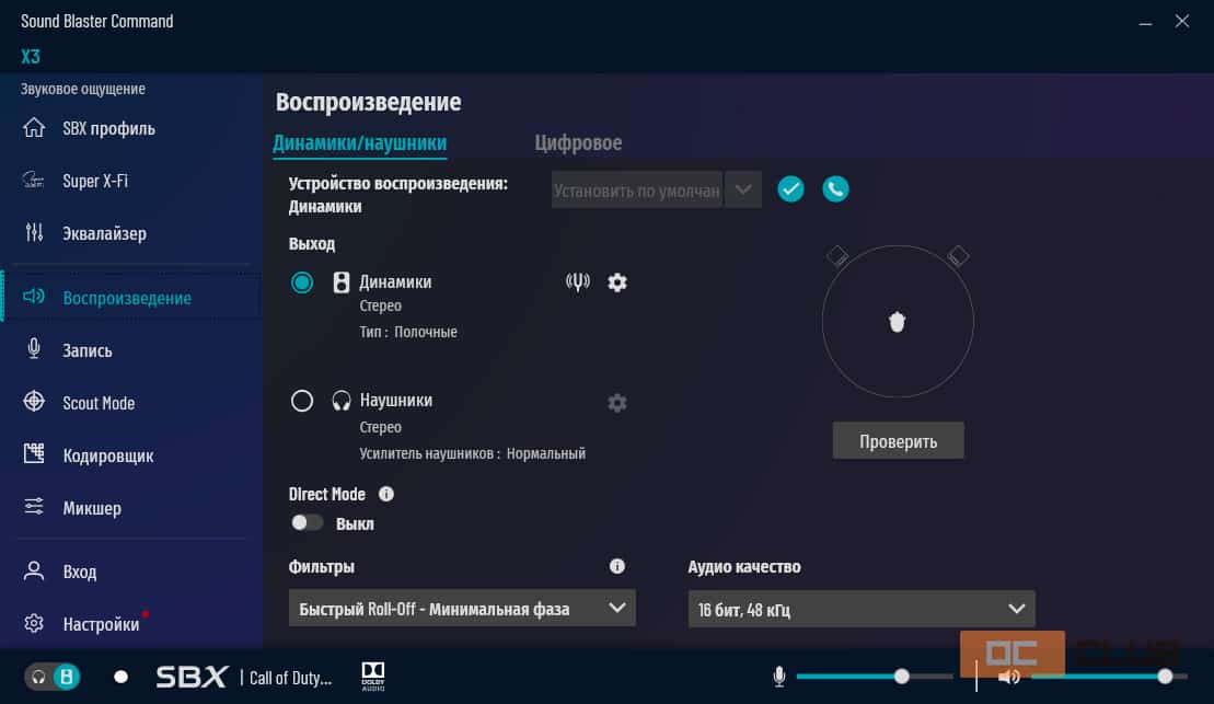 Технология Super X-Fi, позиционируемая как одна из ключевых «фишек» Creative в общем и SoundBlaster X3 в частности, действительно интересная штука. Но не стоит от неё ждать улучшения звука или чего-то подобного. Она даст ощущение пространства, уберёт неестественность изоляции динамиков наушников – эдакий виртуальный 7.1 версии 2.0
