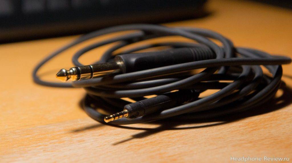 Съёмные кабели подключаются к левому наушнику через 2,5-мм разъём, причём для большей надёжности они закручиваются. Длина толстого кабеля с четвертьдюймовым штекером около 3-метров, 3,5-мм кабеля — 1,2 метра.