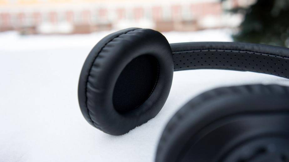 Наушники собраны качественно, ничего не скрипит, не люфтит, пластик приятен на ощупь, не маркий. Оголовье внутри выполнено из пластмассы, но снаружи обшито кожзаменителем. На внутренней стороне сделана вставка из мягкого материала, благодаря чему оголовье не будет давить и доставлять дискомфорт.
