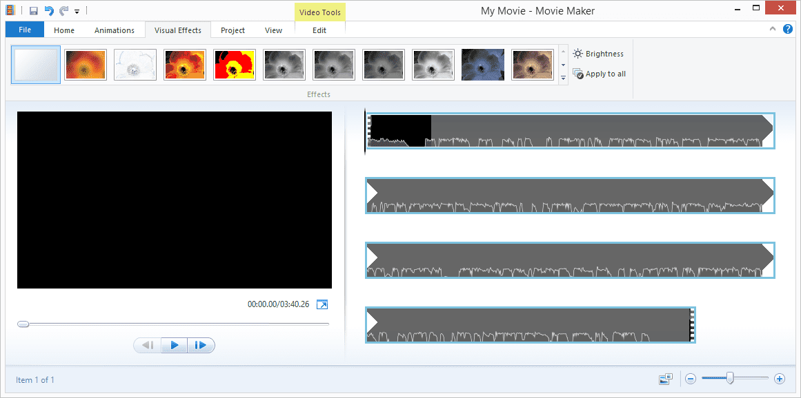 Загрузите видеофайлы в Movie Maker, добавьте анимацию или визуальные эффекты, а затем сохраните видео как файл другого типа из меню « Файл» .