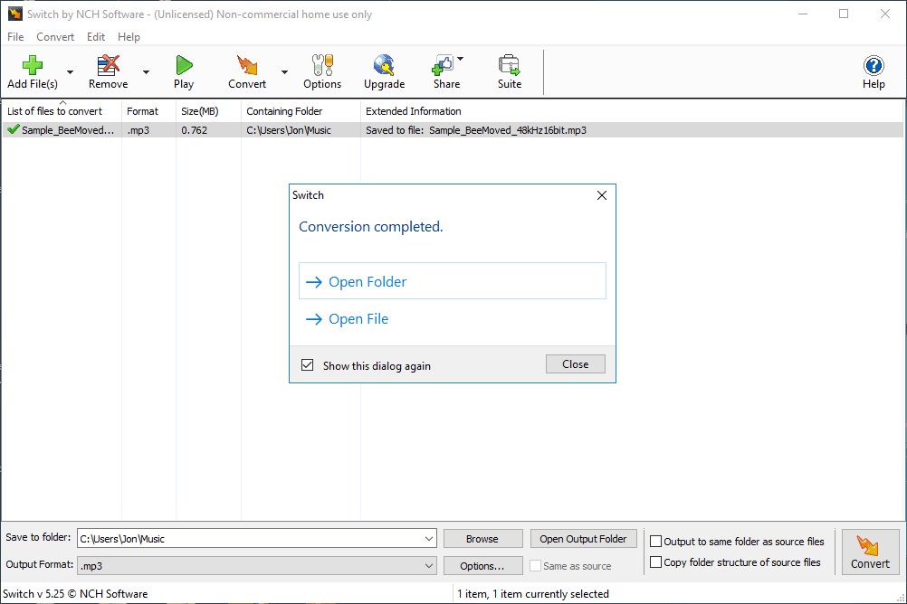 Some users have reported that the program stops letting you convert files after 14 days. If that happens to you, something you might try is starting the uninstall process and seeing if Switch asks you to revert to the free, non-trial version (instead of removing the program).