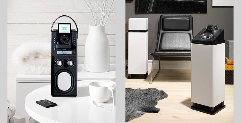 Появляются компактные решения для дома вроде Stereo One Hi-Fi, колонки с поддержкой iPod (Porto – Portable iPod docking speaker) и люксовые устройства – Living LV3.