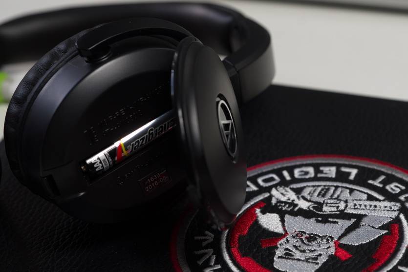 Добавляет плюсов ATH-ANC50iS решение с питанием «шумодава» от сменной мизинчиковой батареи типа ААА — самое красивое, что я встречал за последнее время: в любой точке мира найти батарейку все еще проще, чем зарядить встроенный аккумулятор.