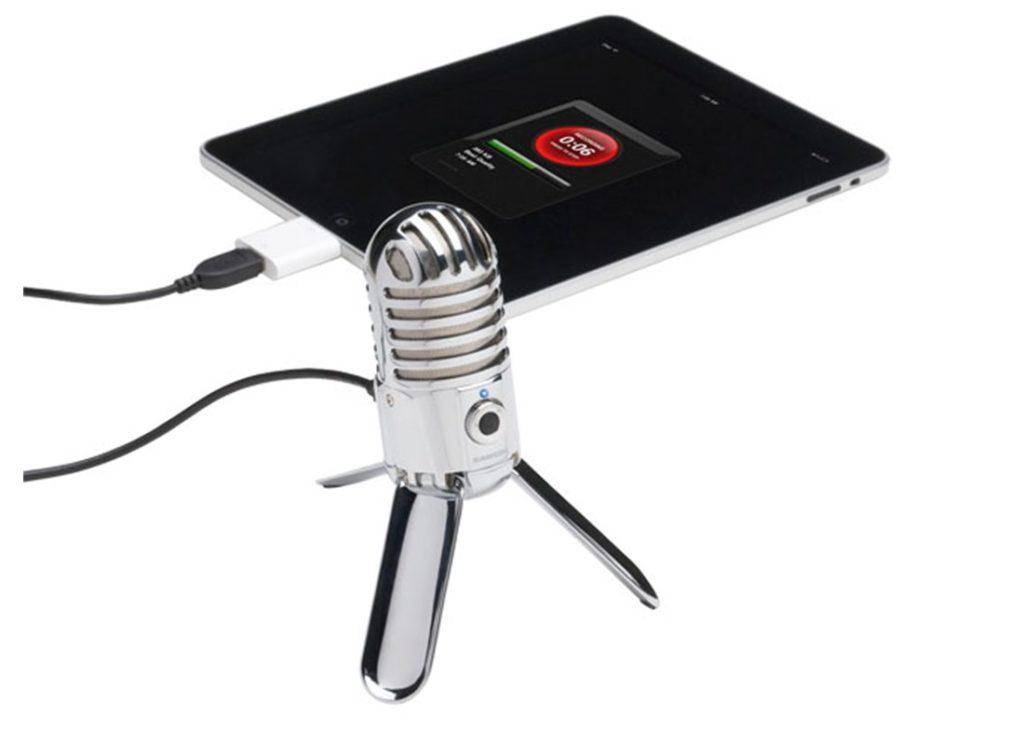 Samson Meteor Mic – это отличный микрофон с питанием от USB и 25-миллиметровой диафрагмой. Он заключен в хромированный металлический корпус и имеет встроенную подставку. Частотный диапазон аппарата – от 20 Гц до 20 кГц. Также устройство совместимо с iMac, Mac Mini, Mac Pro, MacBook Air и MacBook Pro.