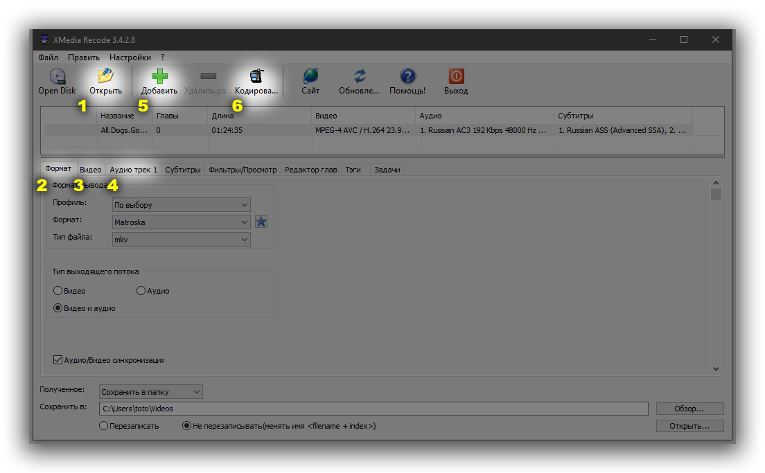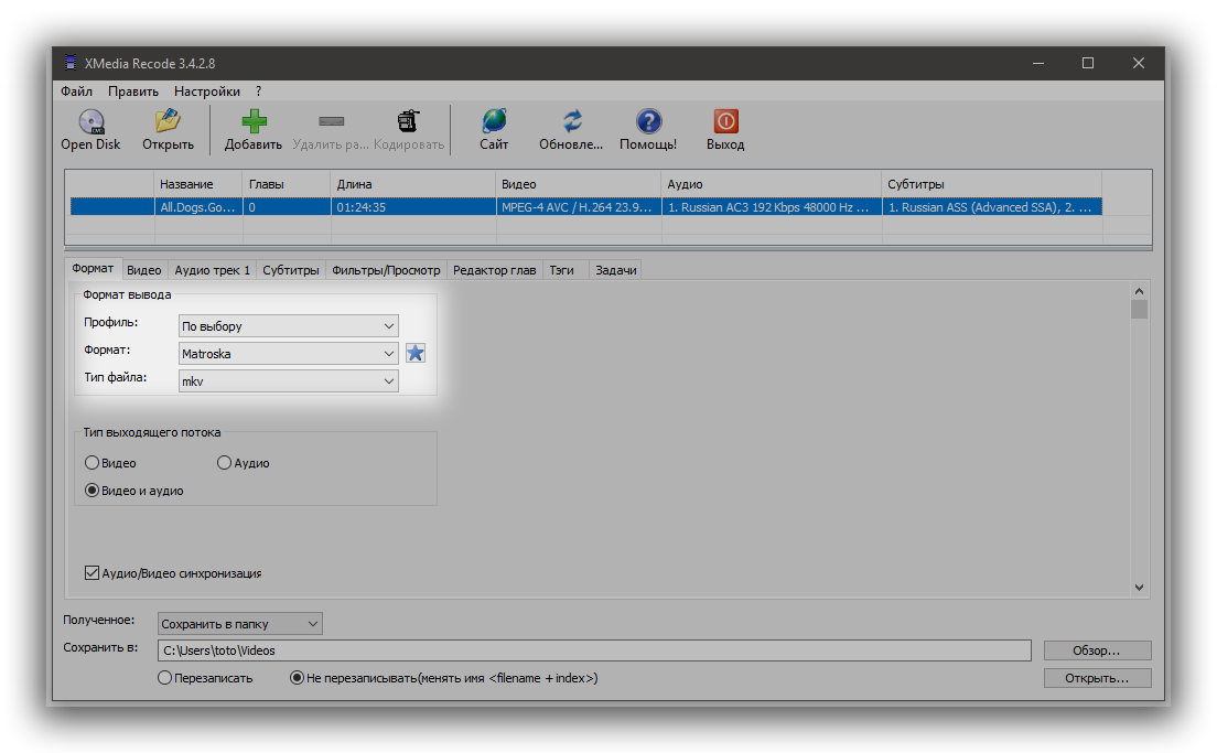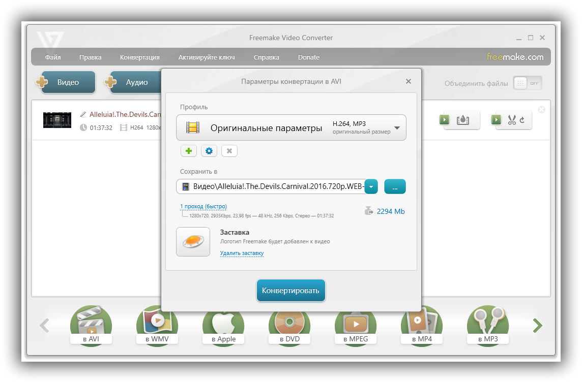 В принципе, если такие скорости тебя не смущают, и ты готов ужиться с другими недостатками программы ради чрезвычайной простоты её использования, то она станет отличным выбором: бесплатно делает то, что тебе нужно и даже чуть больше — ты также можешь подготовить видео для просмотра на планшете, смартфоне и другой чудо технике. А для простой замены звуковой дорожки из формата AC3 в формат MP3, понятный любому плееру, тебе достаточно выбрать “в AVI” в нижнем ряду иконок.
