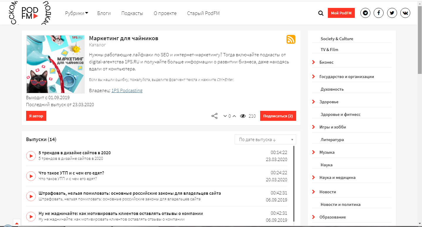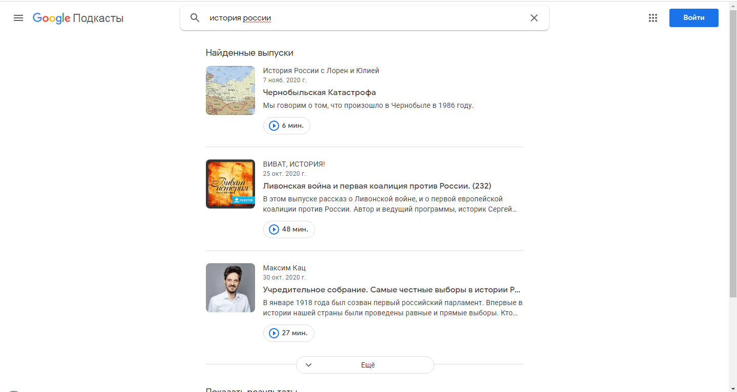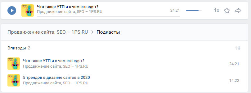 Выглядят подкасты так: