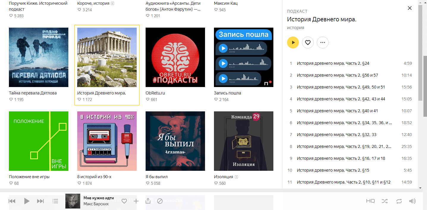 Вот так выглядят подкасты на Яндекс.Музыке: