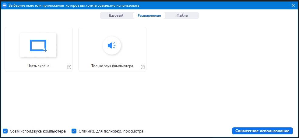 - Поделиться частью экрана — то есть выбрать область экрана в демонстрации зум и даже менять ее размер;