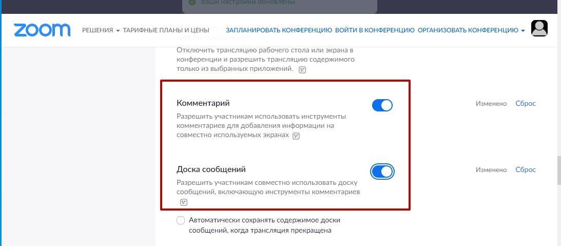 Чтобы эта опция была определена при каждой конференции — включите ее в личном кабинете на сайте zoom.us. Чтобы настроить демонстрацию экрана в zoom, войдите в личный кабинет и перейдите в настройки.