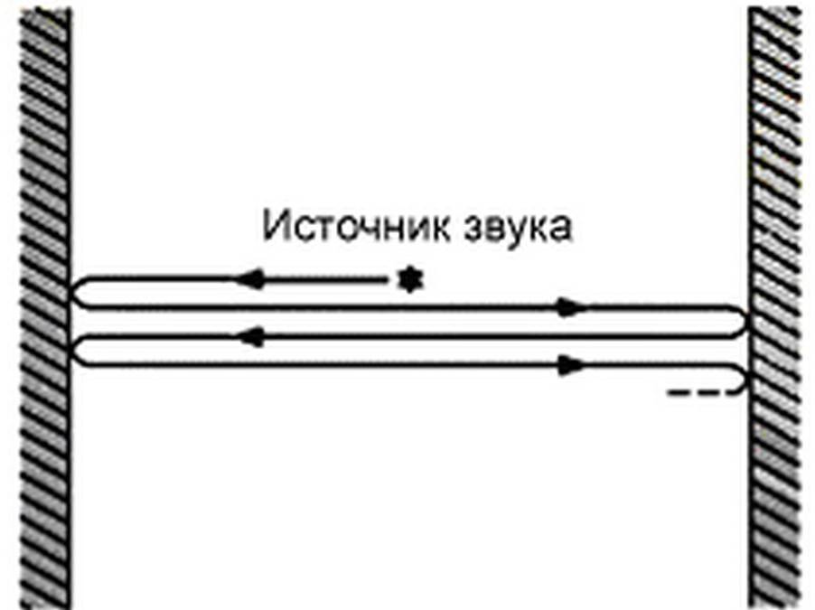 Немного иначе, “порхающее эхо” возникает после размещения звука между параллельными, гладкими поверхностями с высокой отражающей способностью.
