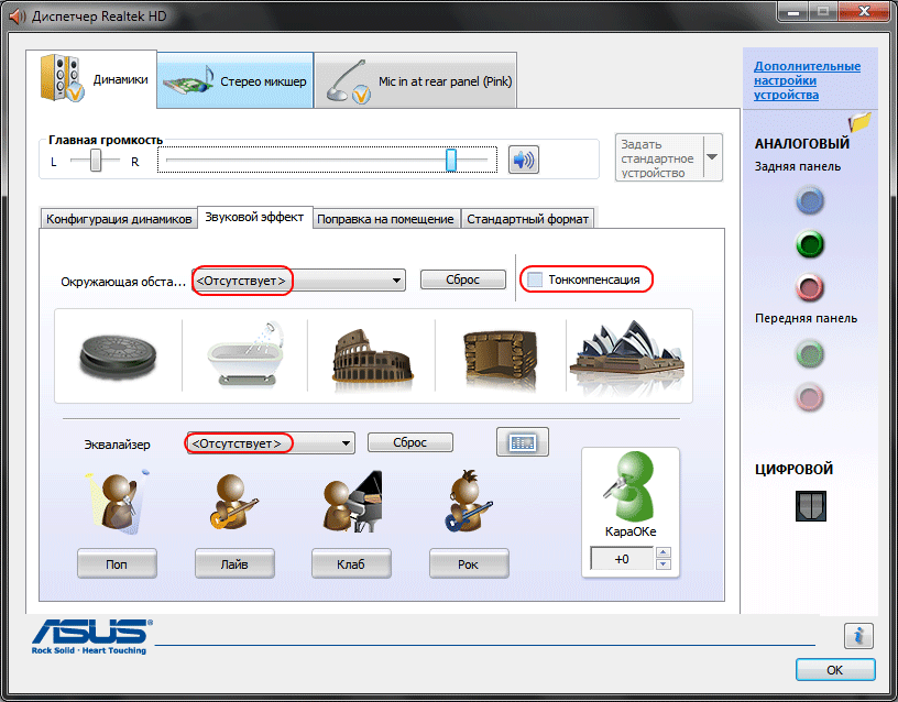Панель управления->Оборудование и звук->Диспетчер Realtek HD. Так или иначе, должно открыться окно диспетчера: