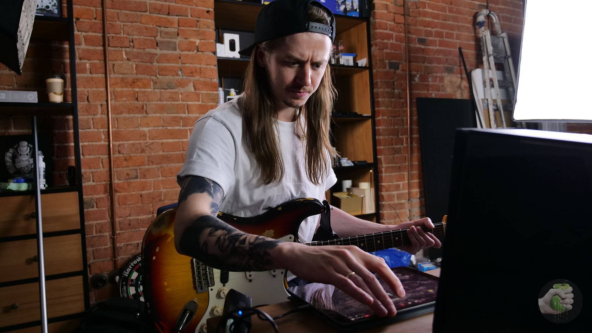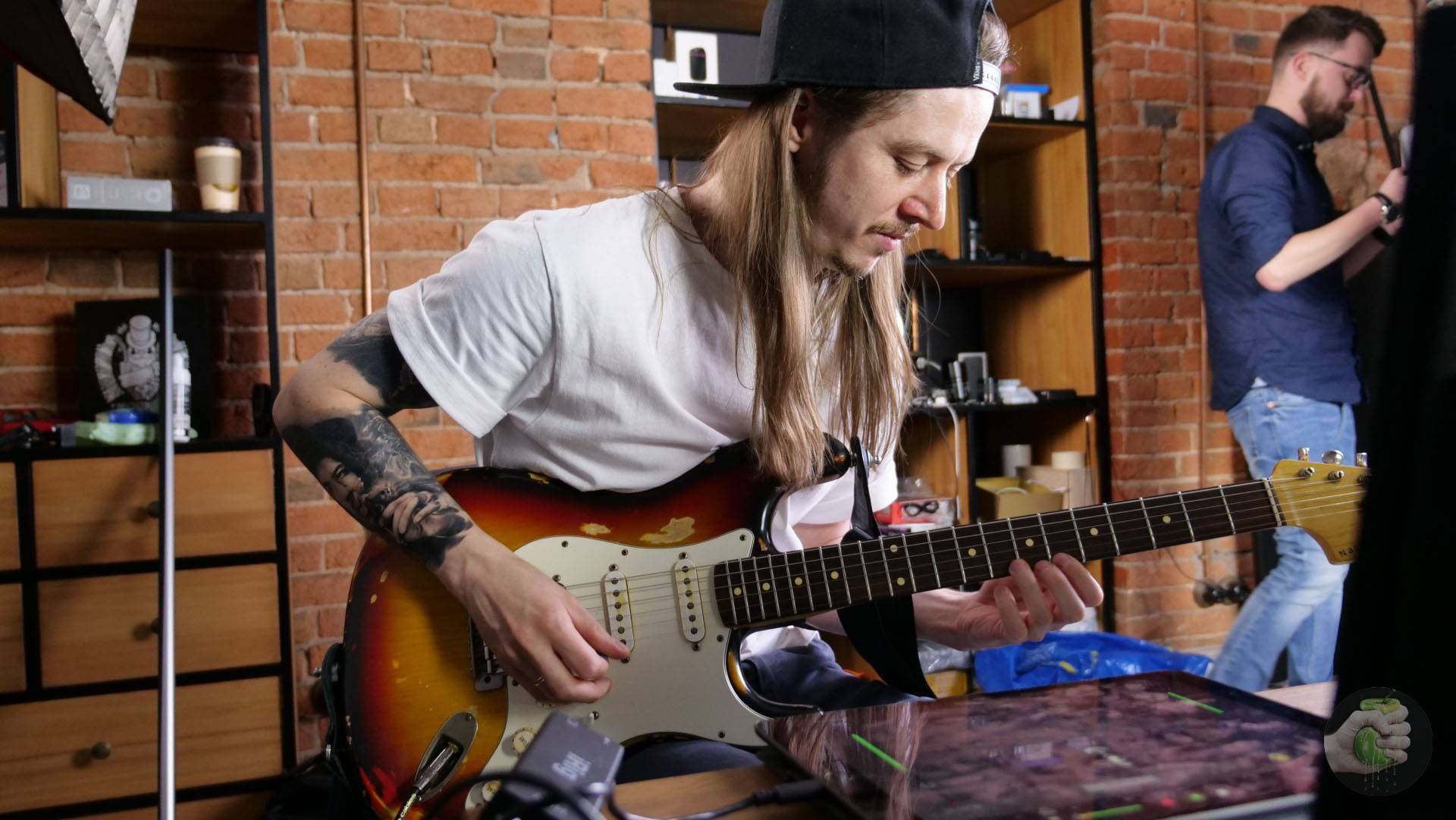 Начав с чашечки кофе и обсуждения любимых песен Foo Fighters (Вить, как же я завидую, что ты-таки попал на их концерт) и любимых музыкальных плагинов, мы переместились в съёмочную, где он расчехлил свой дорогущий «Страт», сделанный на заказ в Nashguitars, и iPad Pro (2017).