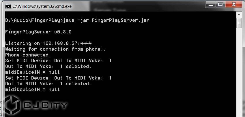 Во-первых, устанавливаем Server type – FingerServer. Во-вторых, в Server Address устанавливаем ip-адрес нашего компьютера. Теперь на компьютере разархивируем FingerPlayServer.zip и запускаем run.bat