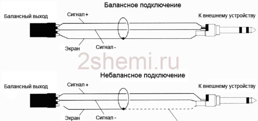 Есть балансное подключение и небалансное. Всегда нужно отдавать предпочтение балансному, а когда это возможно и\или предусмотрено — особенно. С небалансным, «обычным» подключением нет проблем — два проводника, один из которых «экран» (земля), служащий защитой от электромагнитных наводок и непосредственно «сигнал» — не путать с «+» и «-«, так как передача аналогового аудиосигнала — это передача с помощью переменного напряжения, меняющего полярность со скоростью, зависимою от частоты сигнала.