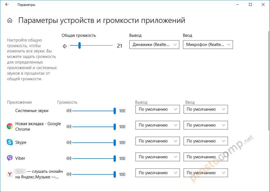 И уже в окне «Параметры устройств и громкости приложений» можно менять настройки громкости приложений, или динамики и микрофоны, которые они используют.