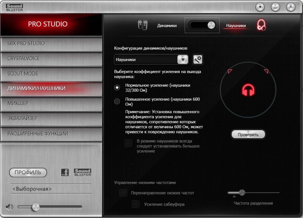 Переключение вывода звука с колонок на наушники с помощью фирменного программного обеспечения звуковой карты