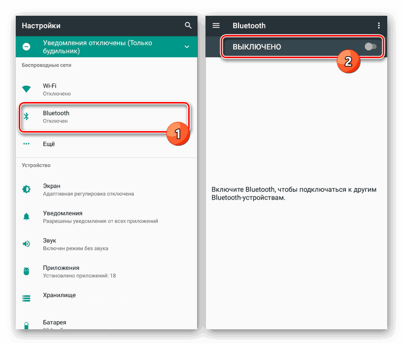 Одной из причин невозможности сопряжения может быть отключенный модуль Bluetooth на смартфоне. Рекомендуется проверить опцию в панели уведомлений и, если нужно, сделать настройки.