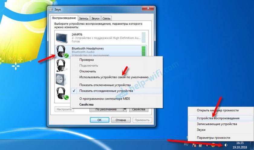 В устройствах воспроизведения нужно присвоить им статус “по умолчанию”.