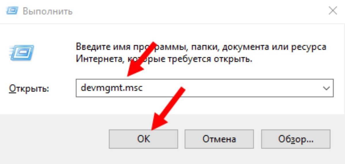 - Откройте окно «Выполнить» сочетанием клавиш Win + R → введите devmgmt.msc → нажмите «OK».