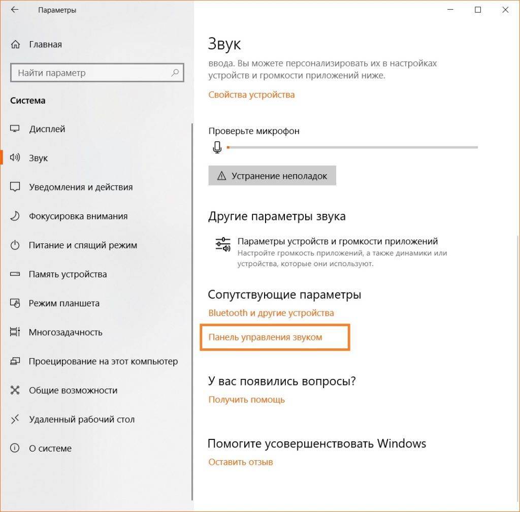 «Панель управления звуком»