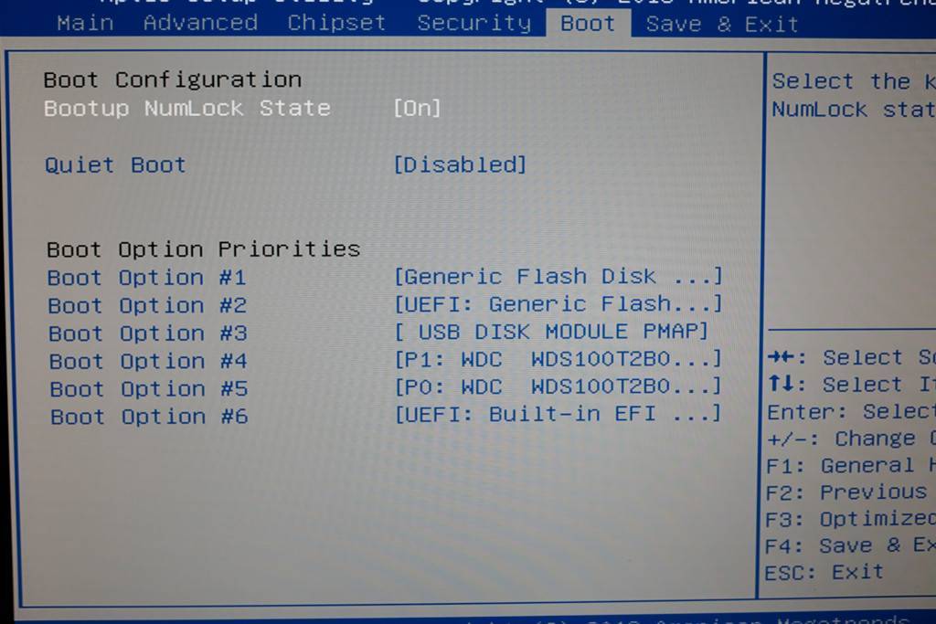 Так как это обычный x86_64 ПК, я записал на флешку свежий дистрибутив, зашел в BIOS и загрузился с нее: