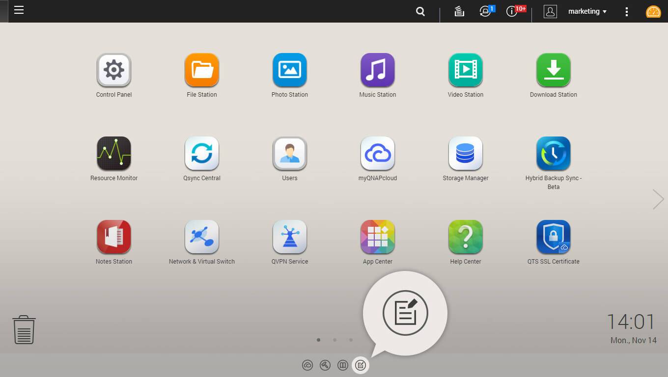После покупки и установки самого NAS-а, решил попробовать использовать софт от самого QNAP. Стоит сказать, что он очень разнообразный – полностью заменяет публичные облака и даже умеет запускать виртуальные машины. Из себя он представляет некую ОС (на основе Debian, кажется), с веб-интерфейсом а-ля iPad и проприетарными приложениями.