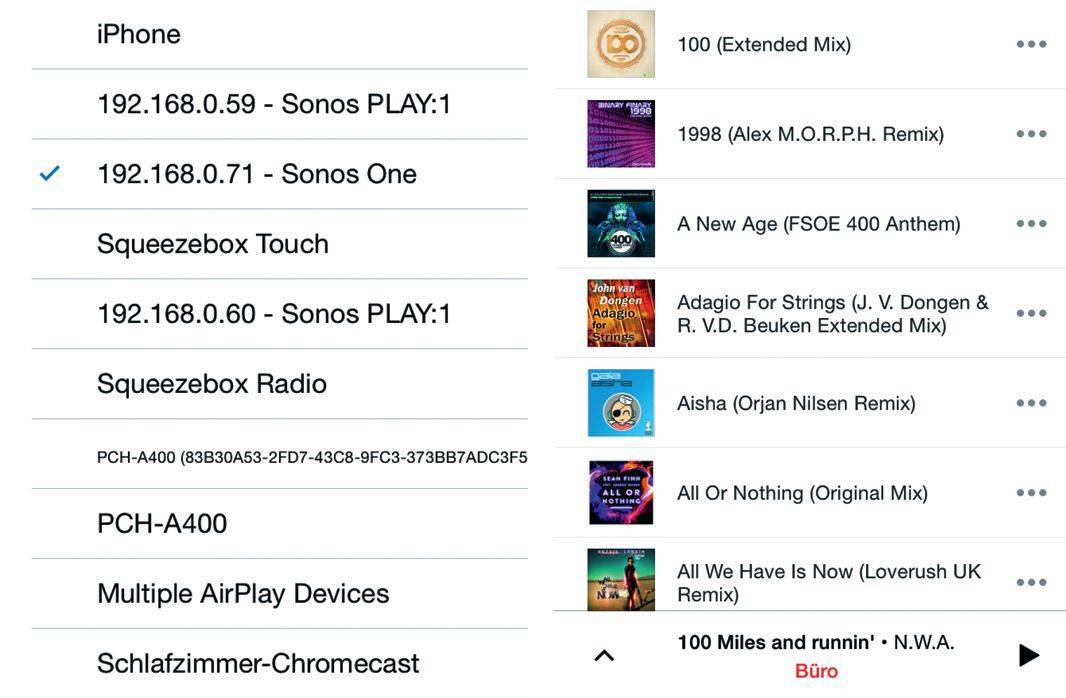 После выбора одного из этих устройств ваш смартфон или планшет будет подключен в качестве пульта дистанционного управления: вы выбираете музыкальную программу на смартфоне или планшете, и затем музыка воспроизводится с помощью выбранного проигрывателя. Воспроизведение также работает через приложение Sonos. Для этого достаточно указать путь к музыкальной коллекции.