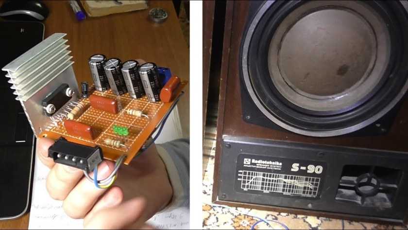 Основным элементом усилителя является электронная плата, габариты которой требуется знать заранее. В качестве корпуса может использоваться как сама колонка (в таком случае усилитель монтируется в отдельное пространство), так и подходящий сторонний контейнер.