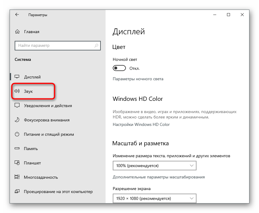 На панели слева вас интересует раздел «Звук».