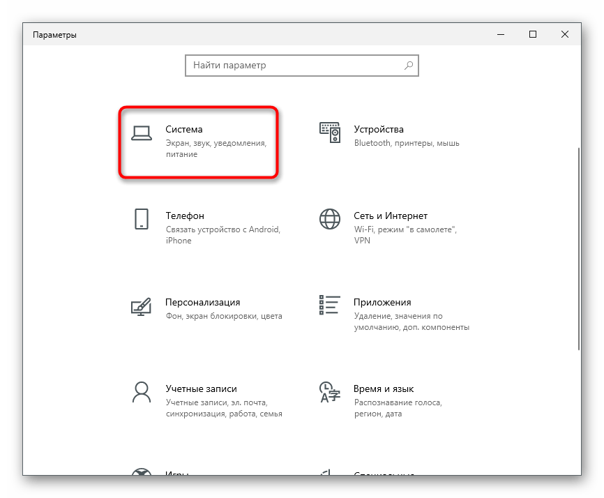 Щелкните по плитке «Система».