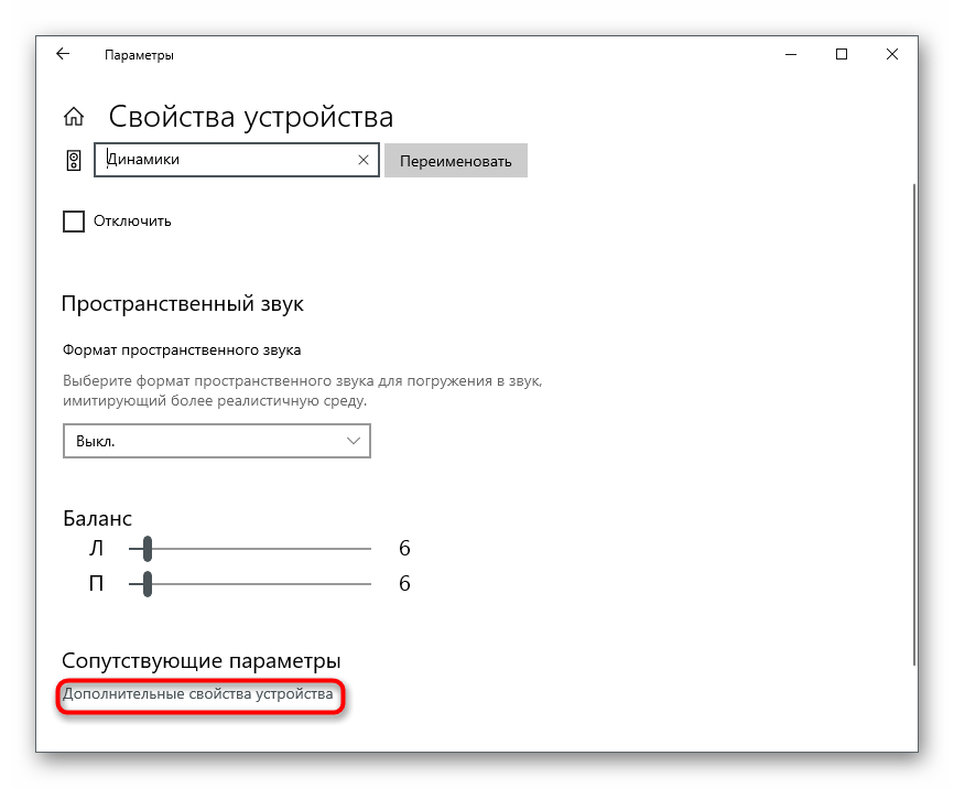 - Откройте «Свойства» динамиков, используя пункты 1-4 из предыдущей инструкции.