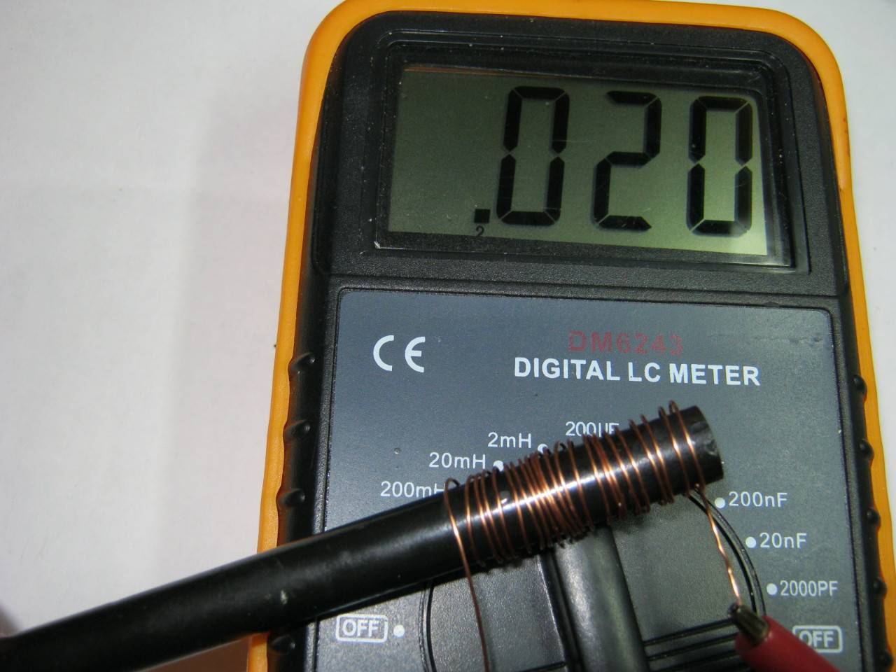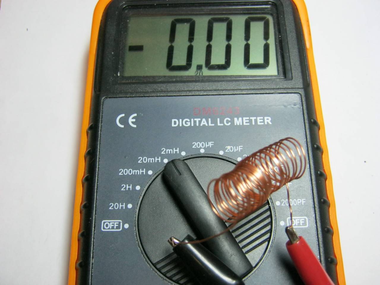От каких факторов зависит индуктивность катушки? Давайте проведем несколько опытов. Я намотал катушку с немагнитным сердечником. Ее индуктивность настолько мала, что LC — метр мне показывает ноль.