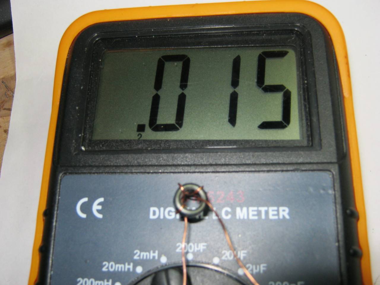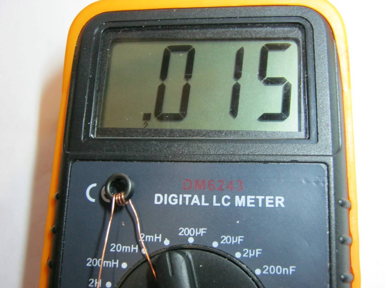 Хм, также 15 микрогенри. Делаем вывод: расстояние от витка до витка не играет никакой роли в катушке индуктивности тороидального исполнения.