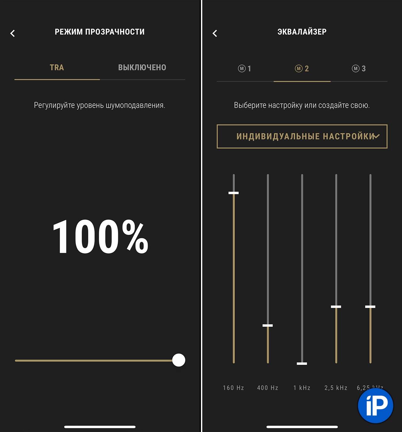 Шумоподавление можно отключить отдельной кнопкой на корпусе наушников или через приложение. Также при помощи софта настраивается «прозрачный» режим: наушники будут пропускать часть звуков — насколько много, настраиваете уже сами в программе.