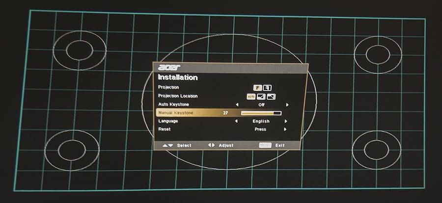 Одно замечание: я обсуждал только вертикальную коррекцию трапецеидальных искажений. Возможно, вам понадобится коррекция горизонтального трапецеидального искажения, но варианты здесь менее стандартные. Некоторые проекторы предлагают коррекцию трапецеидальных искажений по горизонтали, а также по вертикали, и по мере того, как отрасль продвигается вперед, делают все больше и больше, но, если ваш проектор этого не делает, вам придется выполнить «ручную» коррекцию трапецеидальных искажений по горизонтали, что очень приятно Это значит, что вам нужно переместить проектор так, чтобы он совпадал с центральной линией экрана.
