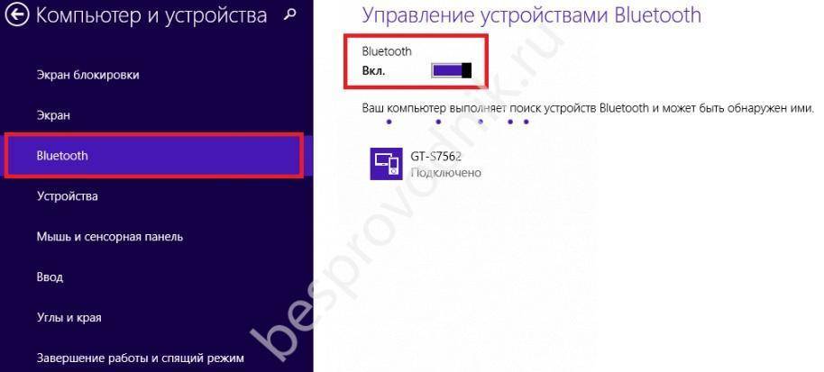 - Войдите в панель управления на планшете, зайдите в «Параметры», «Устройства» и «Bluetooth».
