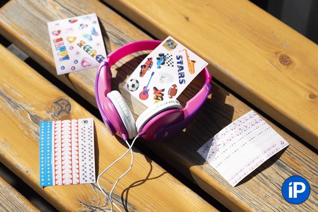 В комплекте с каждыми есть 4 набора наклеек. Они позволят «кастомизировать» ушки под увлечения ребенка. Отличное решение из коробки.