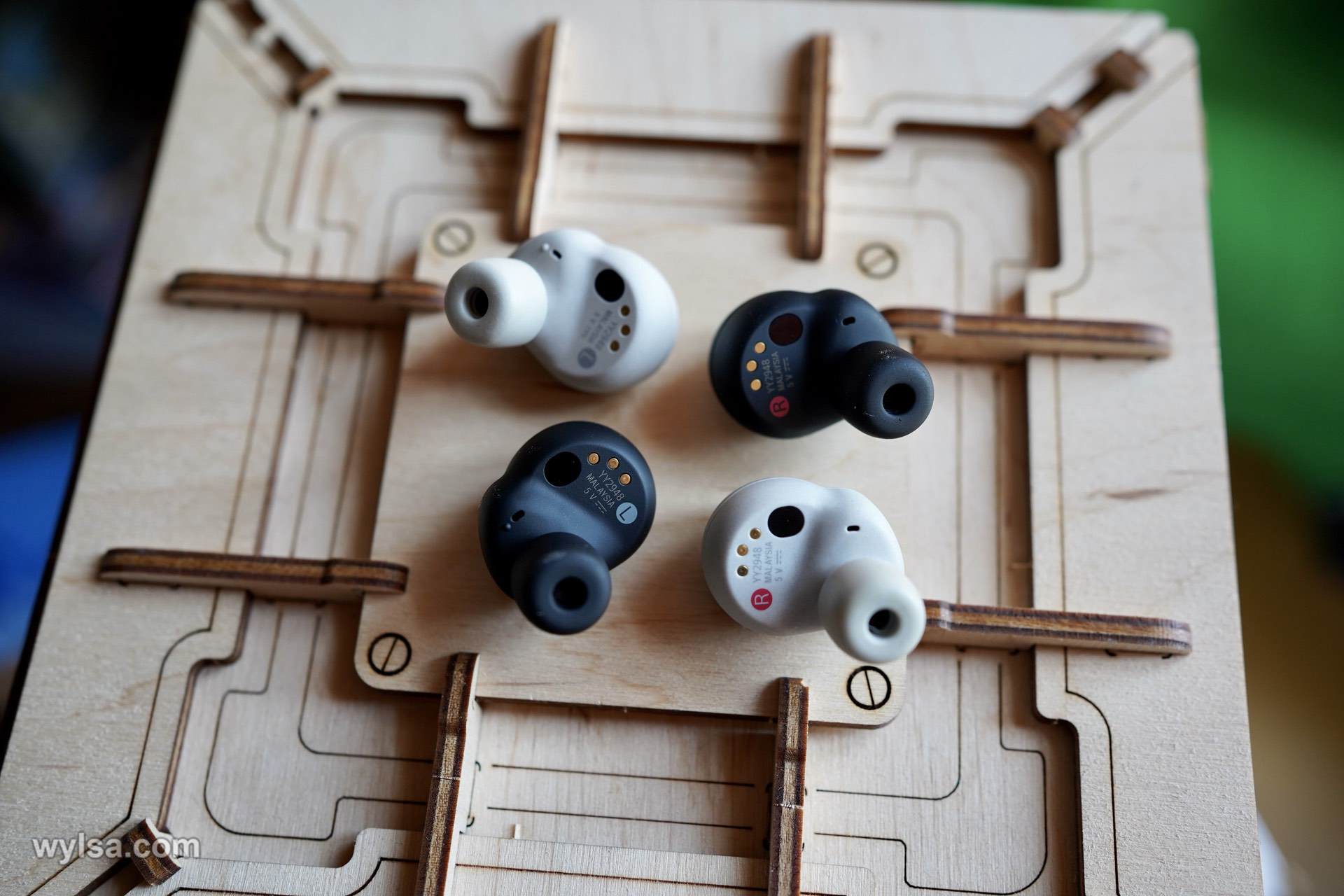 В Sony пошли дальше. Кроме отличного дизайна, тут и внутри всё ок: используется собственный чип V1, сигнал передаётся не от одного наушника к другому, а сразу в обе чашки. Версия Bluetooth 5.2, поддерживаются кодеки SBC, AAC, LDAC. И вот что ещё удивительно: вместо насадок из силикона насадки из полиуретана, или, если выражаться проще, это пена. И ещё датчик костной проводимости!
