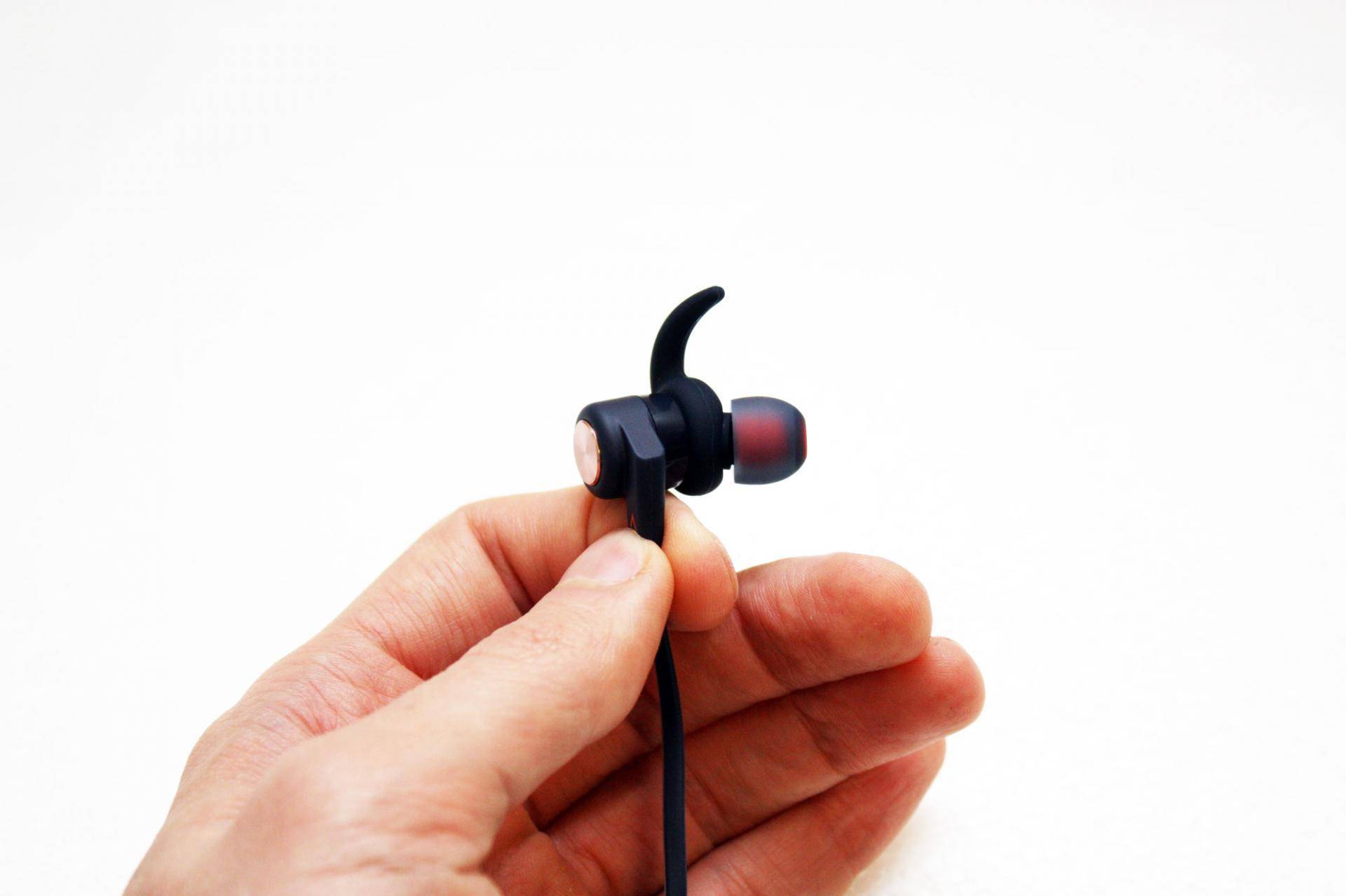 Наушники удобно сидят в ушах. Идея с поддерживающими «крючками» оказалась хороша. Они нетипичны, не те, что цепляются за ухо сверху, а вставляются в ушную раковину и поддерживают наушник внутри, чтобы тот не выпадал даже при резких движениях, беге или каких-то нагрузках. В названии «sports» указано не просто так. Модель действительно подойдёт тем, кто ведёт активный образ жизни.