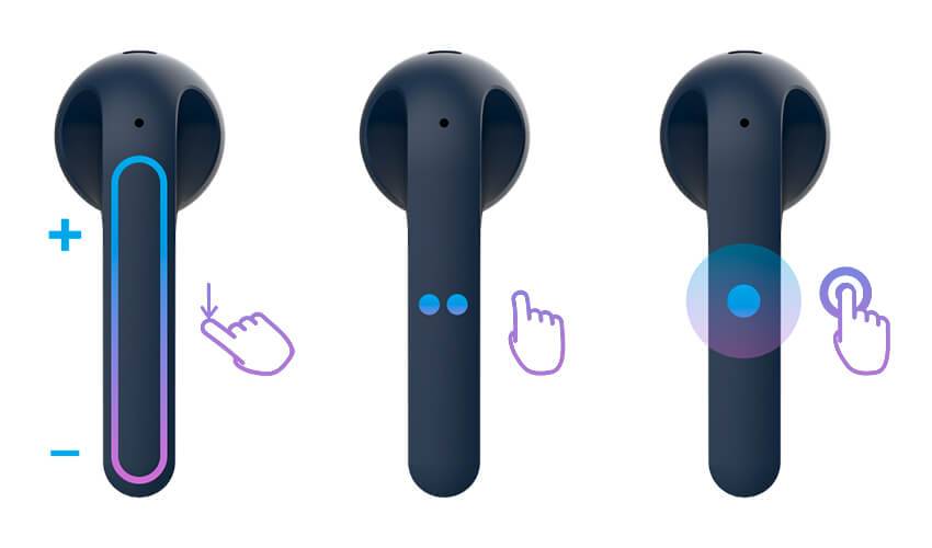 При помощи сопряжённого смартфона пользователь может настроить под себя действия этих команд: переключение треков, постановка на паузу и возобновление музыки, вызов голосового ассистента.