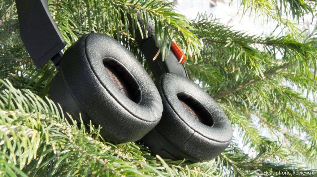 Небольшая красная бирка Plantronics – единственный выдающийся бренд на головном ремешке. Мягкая подушка в виде пены с эффектом памяти предотвращает утяжеление наушников на голове, а мягкие искусственные кожаные амбушюры удобны даже для длительных прослушиваний. Наушники подключаются к металлическому кронштейну, который удовлетворительно фиксируется в установленных положениях.