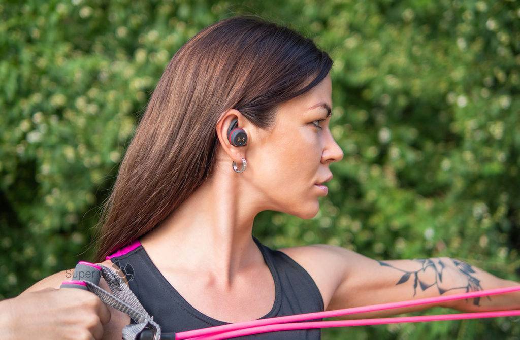 Важно, чтобы беспроводная гарнитура не выпадала из ушей при движениях, беге