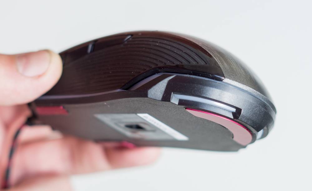 Ножки у мыши металлические, и это одна из ключевых особенностей, которые нужно учитывать при покупке. Я тестировал A4Tech Bloody P93 на старом тканевом коврике, и это оказалось дурной затеей. Металл то и дело цеплялся за неровности ворсистой поверхности и мешал плавному передвижению мыши и точному прицеливанию. А вот после перехода на пластиковую поверхность работать становится очень легко и приятно.