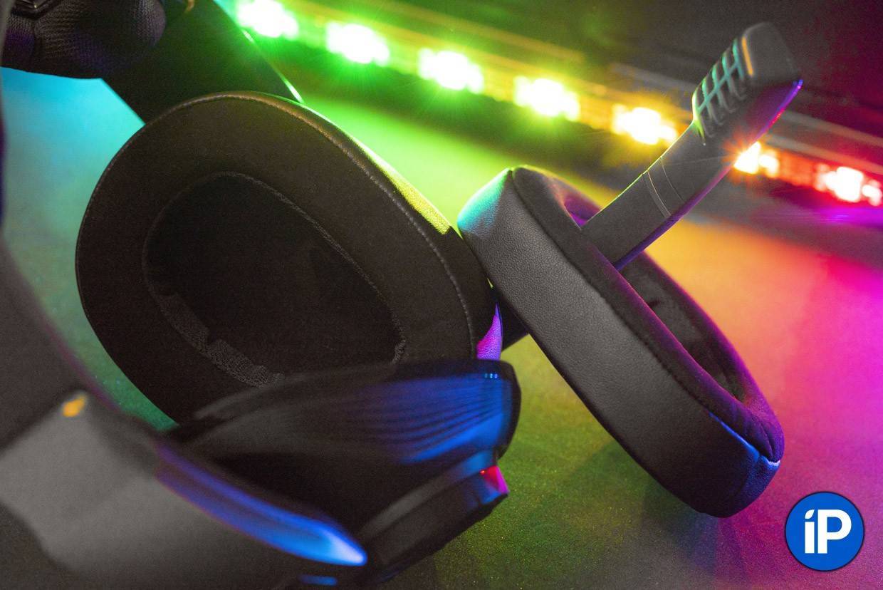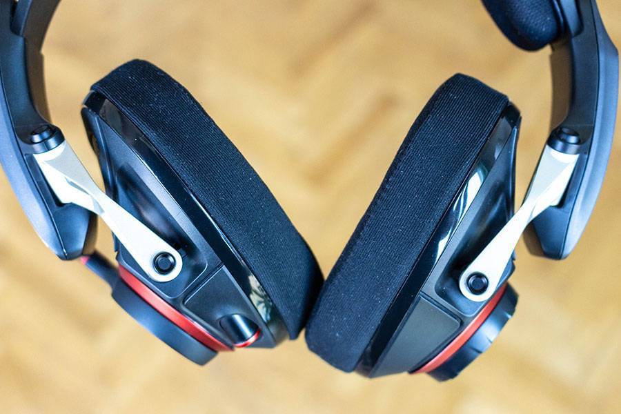Массивные ушные чашки полностью окружают уши. Как мы уже упоминали, они сделаны полностью из ткани. Ушные подушки ощущаются прекрасно и делают фантастическую работу по обеспечению действительно превосходного уровня комфорта во время ношения. Распределение веса гарнитуры также выполнено прекрасно, и мы не испытывали дискомфорта при использовании ее в течение пяти и более часов без перерыва.