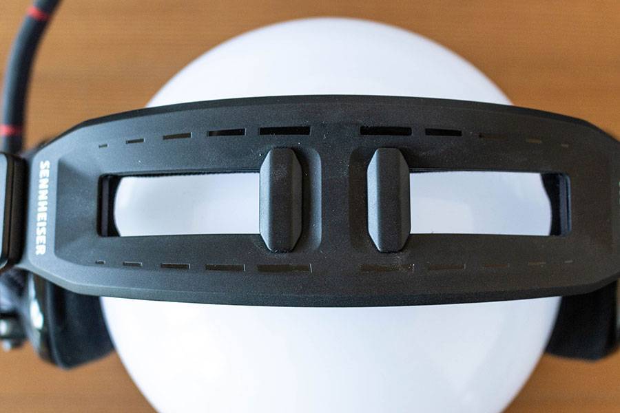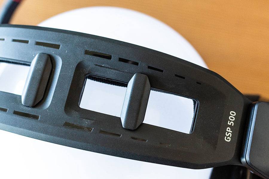 Одной из функций, которая ранее не присутствовала на игровых гарнитурах Sennheiser, была способной регулировать натяжение оголовья, что в результате меняет силу зажима. Есть два ползунка, которые можно перемещать влево и вправо. Двигая их, вы фактически меняете натяжение “невидимой” внутренней металлической пластины оголовья. Сила захвата увеличивается по мере увеличения расстояния между этими ползунками. Если вы хотите, чтобы гарнитура была более свободной – ползунки должны располагаться как можно ближе друг к другу. Мы уже видели это решение на турнире Turtle Beach Elite Pro. Оно отлично работало там и отлично работает на Sennheiser GSP 500 (и GSP 600).