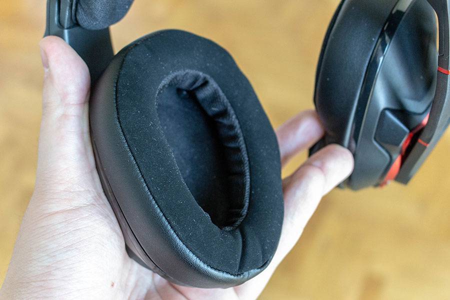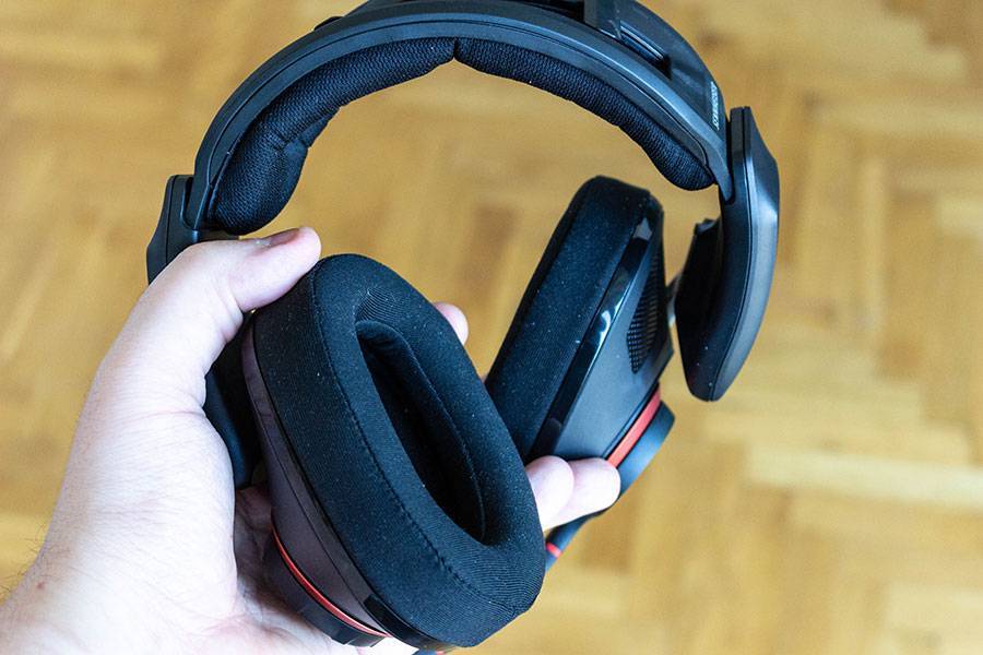 Ушные колодки тоже разные. В то время как GSP 600 (на фото справа) использует кожу и замшу, подушки на GSP 500 (на фото слева) сделаны полностью из ткани и немного тоньше. Как мы уже упоминали в обзоре GSP 600, Sennheiser утверждает, что целью замши является предотвращение прилипания ушных вкладышей к голове. Можно утверждать, что такое решение не требуется из-за открытой конструкции GSP 500 – у нас гораздо больше воздушного потока, и уши не так сильно греются, даже в более теплой комнате.