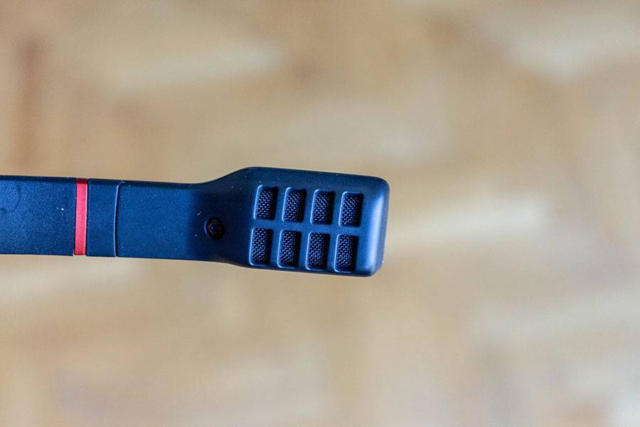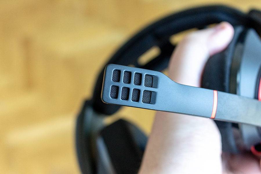 Оставаясь верным дизайну игровой гарнитуры, Sennheiser интегрировала функцию отключения микрофона в сам микрофон. Если вы не хотите, чтобы он вообще работал, вы можете просто повернуть его вверх. На первой фотографии отображается точная позиция, в которой можно почувствовать и услышать слабый щелчок, который оповестит вас, что микрофон отключен. Когда вы захотите снова использовать его, все, что вам нужно сделать, это потянуть его вниз, пока он не будет расположен на уровне вашего рта. Диапазон движения микрофона реализован так же, как и регулятор громкости, как с точки зрения гладкости, так и с точки зрения точности. Он будет находиться точно в том положении, в котором вы его оставите.
