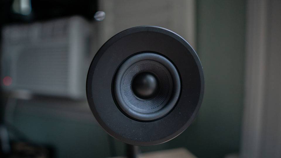 Это делает громкоговорители больше, чем кажется на первый взгляд, так как цилиндр проходит вперед и назад довольно далеко от основания. Эта дополнительная громкость позволяет пространству резонировать низкие частоты, прежде чем они выйдут через порт низких частот на задней панели.