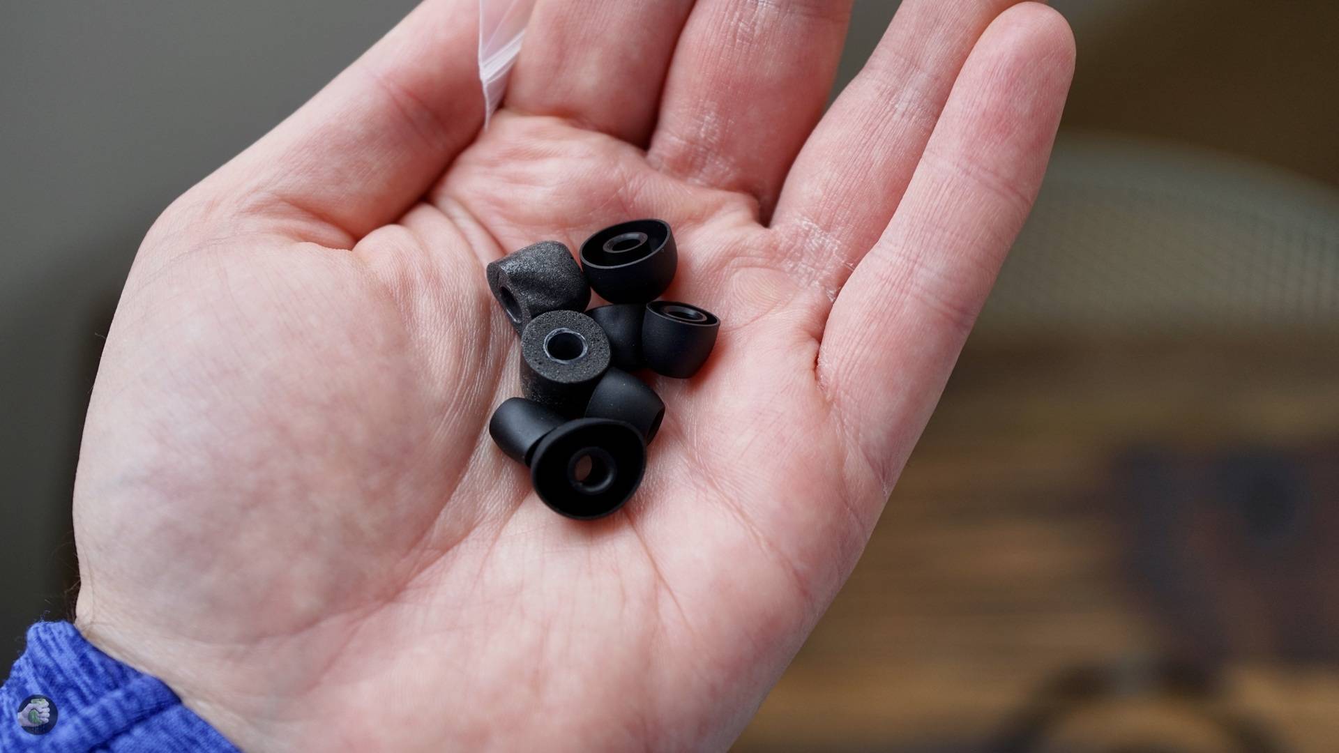Наушники подтверждают подключение фирменным звуковым сигналом, этакое «тук-тук» — мелочь, а приятная. В комплекте россыпь насадок, есть и «пена» — при желании сами купите и установите Comply, приятная штука, меняется и звук, и впечатления от ношения.